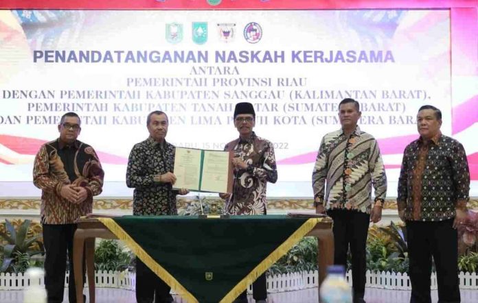 Pekanbaru, Suarapribumi.co.id -– Babak baru hubungan Pemerintah Provinsi Riau dan Pemerintah Kabupaten Lima Puluh Kota bergulir. Hal itu ditandai dengan penandatangan Naskah Kerja Sama kedua daerah oleh Gubenur Riau Syamsuar dan Bupati Lima Puluh Kota Safaruddin Dt Bandaro Rajo di Pendopo Rumah Dinas Gubri Jalan Diponegoro, Kota Pekanbaru, Selasa malam (15/11/22).