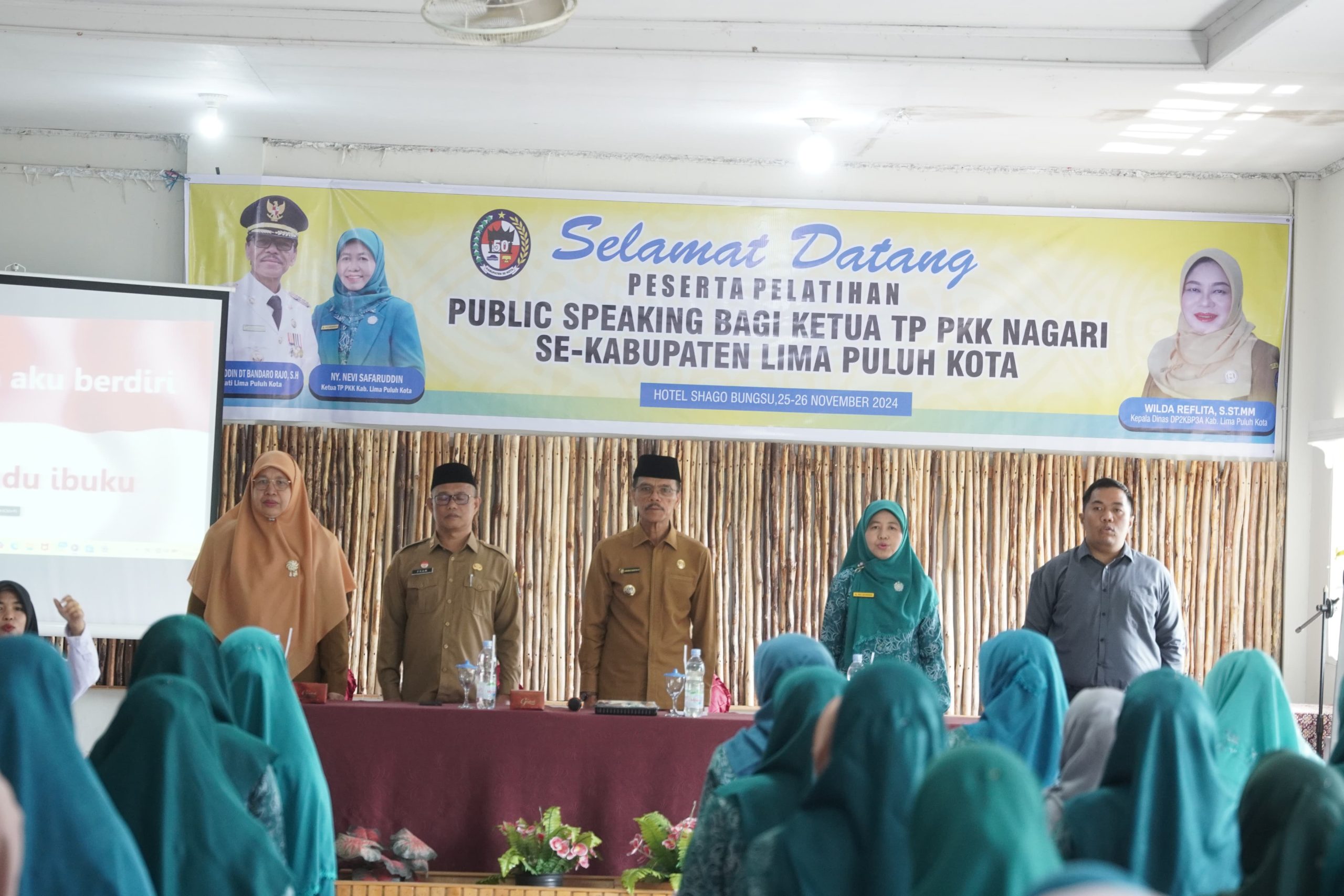 Lima Puluh Kota, Suarapribumi.co.id — Dalam upaya meningkatkan kapasitas dan memperluas jejaring para pemimpin perempuan di Kabupaten Lima Puluh Kota, TP PKK Kabupaten Lima Puluh Kota menggelar pelatihan Public Speaking bagi 79 Ketua TP PKK Nagari. Acara berlangsung pada Senin siang (25/11/2024) di Hotel Shago Bungsu, Lubuak Batingkok. Diselenggarakan selama 2 hari, Pelatihan public speaking dibuka langsung oleh Bupati Lima Puluh Kota Safaruddin Dt.Bandaro Rajo.