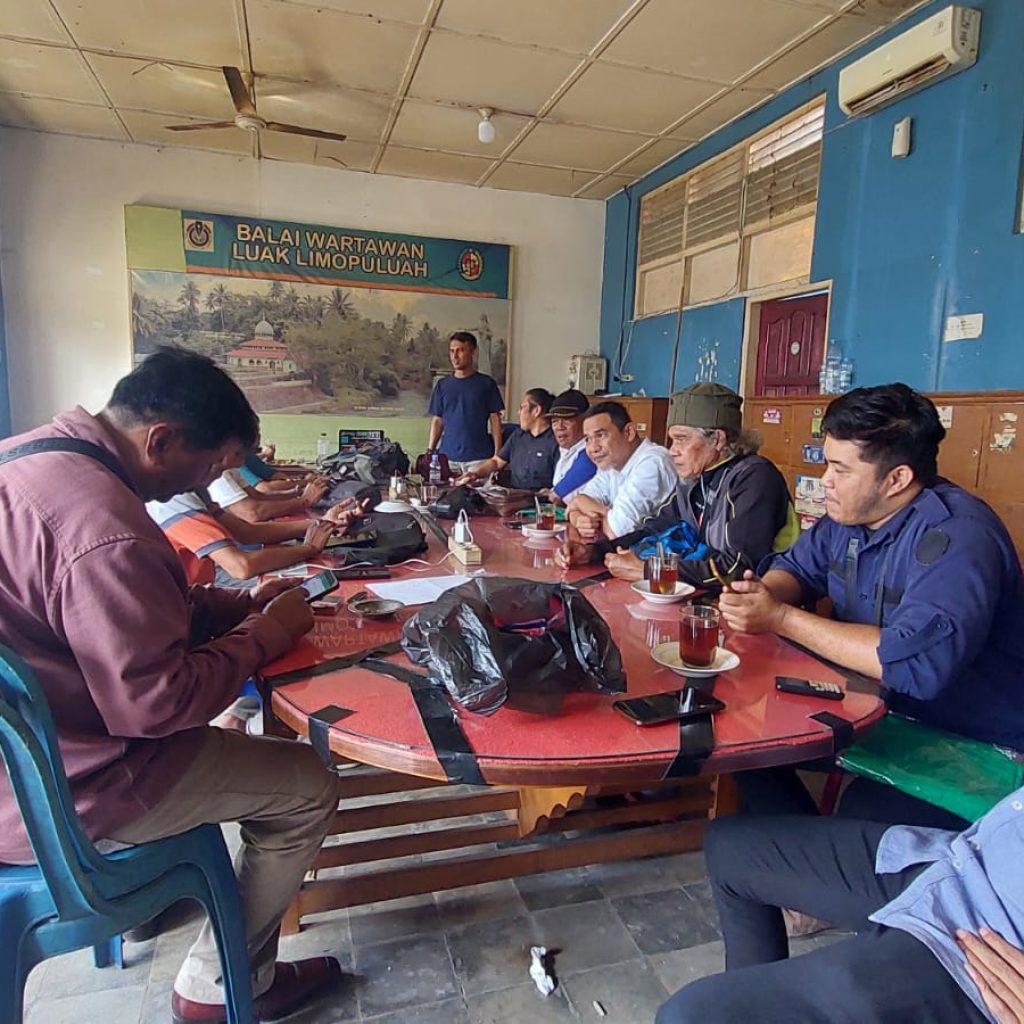 Tampak pertemuan yang berlangsung di Balai Wartawan Luak Limopuluah itu berlangsung hangat dan kekeluargaan.