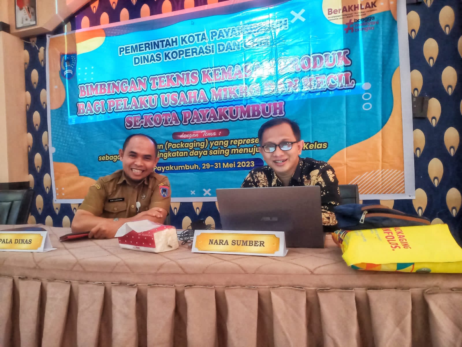 Kepala Dinas Koperasi dan UKM kota Payakumbuh, M. Faizal saat membuka kegiatan ini, menyampaikan Bimtek ini dilakukan agar para pelaku UMKM dapat membuat desain kemasan yang menarik bagi produknya. Dengan demikian, produk yang dimiliki para pelaku UMKM bisa diterima masyarakat dan mudah untuk dipromosikan hingga mendunia.