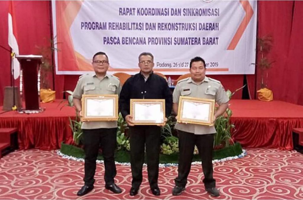 Payakumbuh, SUARAPRIBUMI — Setidaknya ada 3 penghargaan yang diterima Kota Payakumbuh, Kepala BPBD Yufnani Away dan jajaran saat mengikuti Rapat Koordinasi dan Malam Penghargaan Program Rehabilitasi dan Rekonstruksi Daerah Pasca Bencana Provinsi Sumatera Barat, Selasa (26/11/2019) malam bertempat di Rocky Plaza Hotel Jalan Permindo, Padang.
