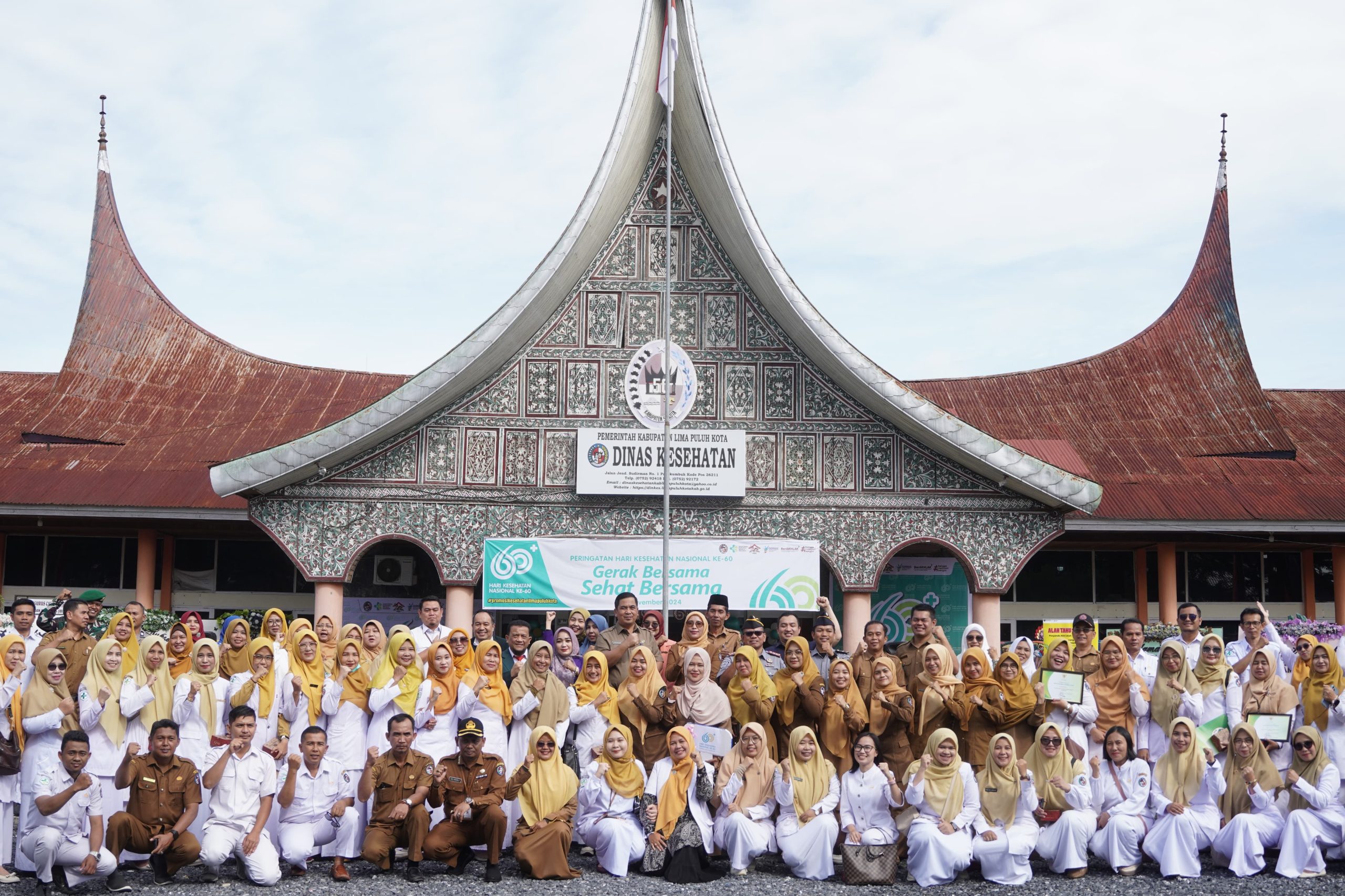 Lima Puluh Kota, Suarapribumi.co.id — Pemerintah Kabupaten (Pemkab) Lima Puluh Kota menggelar upacara peringatan Hari Kesehatan Nasional (HKN) ke-60 tahun 2024 di Halaman Kantor Dinas Kesehatan, pada Selasa (12/11/2024). Upacara yang dimulai pukul 08.00 WIB ini dipimpin oleh Penjabat Sementara (Pjs) Bupati Ahmad Zakri dan dihadiri oleh unsur Forkopimda, sejumlah Kepala perwakilan/cabang BUMN dan Kepala Perangkat Daerah di Kabupaten Lima Puluh Kota. Bertemakan ‘Gerak Bersama, Sehat Bersama’, Pjs. Bupati Ahmad Zakri yang membcakan sambutan Menkes RI Budi Gunadi Sadikin mengatakan, transformasi kesehatan menjadi tonggak penting dalam mewujudkan Indonesia Emas ditahun 2045.