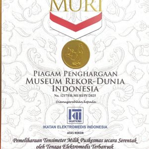 Ikatan Elektromedis Indonesia Pecahkan Rekor MURI dalam Pemeliharaan untuk Tensimeter Puskesmas Serentak se-Indonesia pada 26 April 2025 — Ikatan Elektromedis Indonesia (IKATEMI) hari ini secara resmi mencatatkan prestasi nasional dengan memecahkan rekor Museum Rekor-Dunia Indonesia (MURI) dalam aksi pemeliharaan tensimeter Puskesmas serentak di Indonesia.