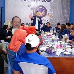 Sementara Ketua DPW NasDem Sumatera Barat Fadly Amran dalam sambutan nya mengharapkan para kader harus mensosialisasikan partai NasDem melalui atribut atribut partai.