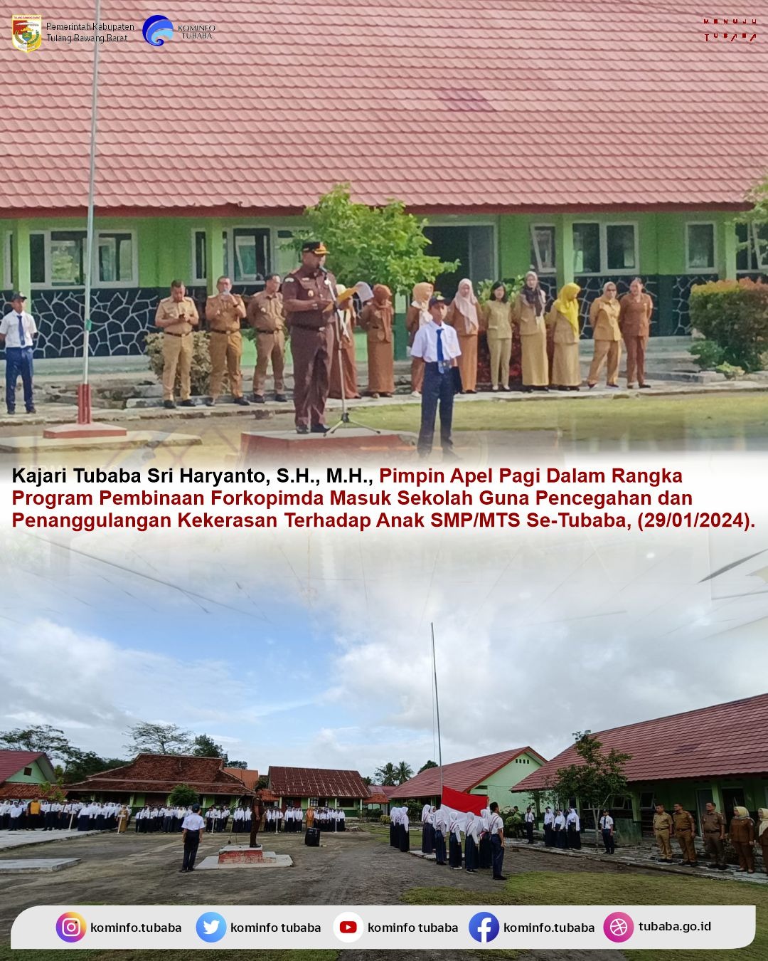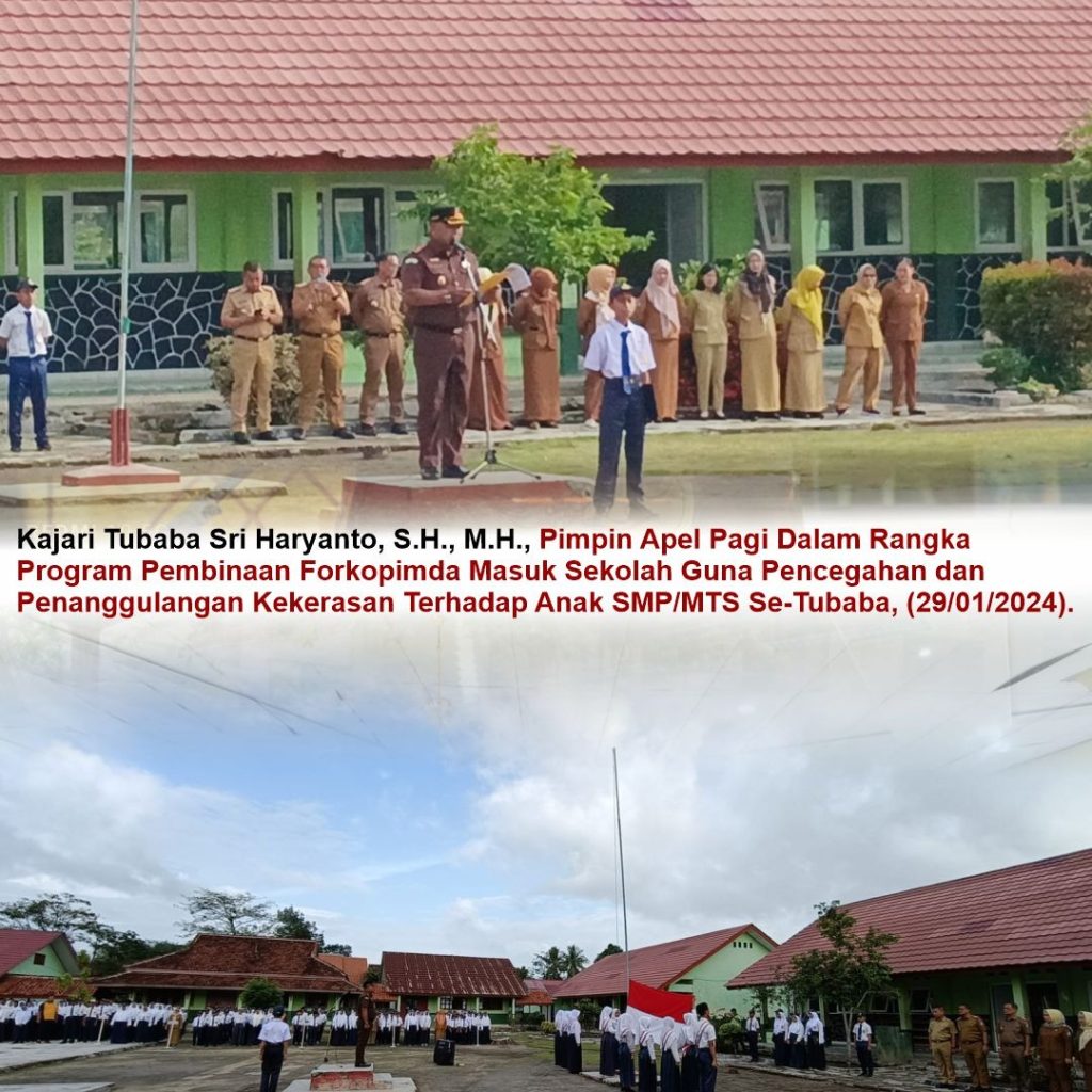 Hal itu ditegaskan Kepala Kejaksaan Negeri (Kajari) Tulangbawang Barat (Tubaba) Sri Haryanto, S.H., M.H., saat hadir dalam kegiatan Forkopimda Masuk Sekolah guna pencegahan dan penanggulangan kekerasan terhadap anak, yang berlangsung di SMPN 07 Panaragan Jaya, Kecamatan Tulangbawang Tengah. Senin (29/01/2024).