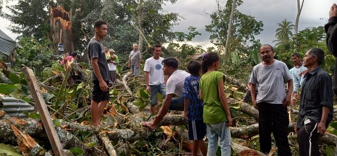 “Saat batang kayu besar itu tumbang dan menimpa rumahnya, orang tua saya terkejut dan shok. Namun untung tumbangnya batang kayu tarok tersebut tidak menimpa ibu dan 4 orang keluarga saya yang tinggal di rumah itu,” sebut Mawi Etek Arianto. (rls/intan)