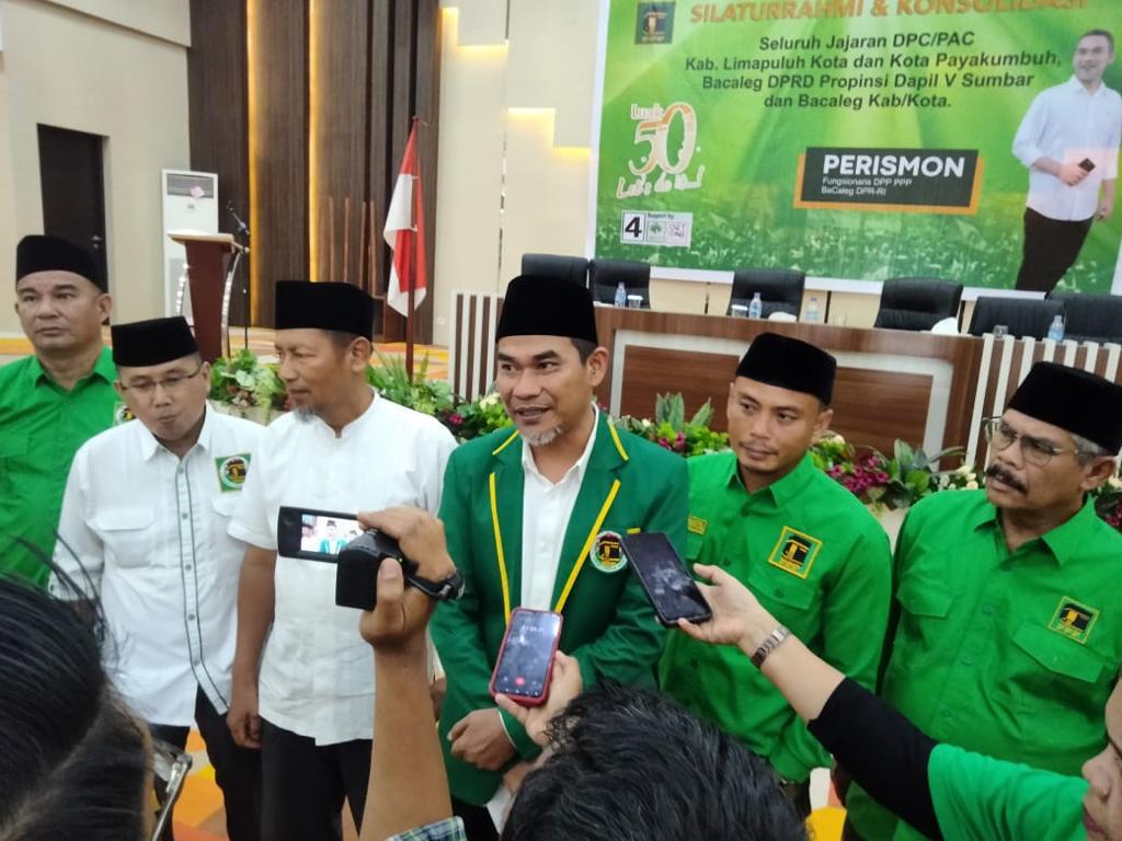 “Tanpa menyampingkan bakal calon lain partai lain, memang sekarang di masyarakat Perismon dianggap berpeluang paling besar. Karena faktor suara ‘incumbent’ PPP yang tidak terlalu tinggi, hanya sekitar 28 ribu. Supaya tidak terulang seperti pemilu-pemilu sebelumnya, kita di Luhak Limopuluah harus realistis untuk loloskan Perismon dulu. Pastikan dulu 1 kursi, yaitu Perismon melalui PPP,” jelasnya.