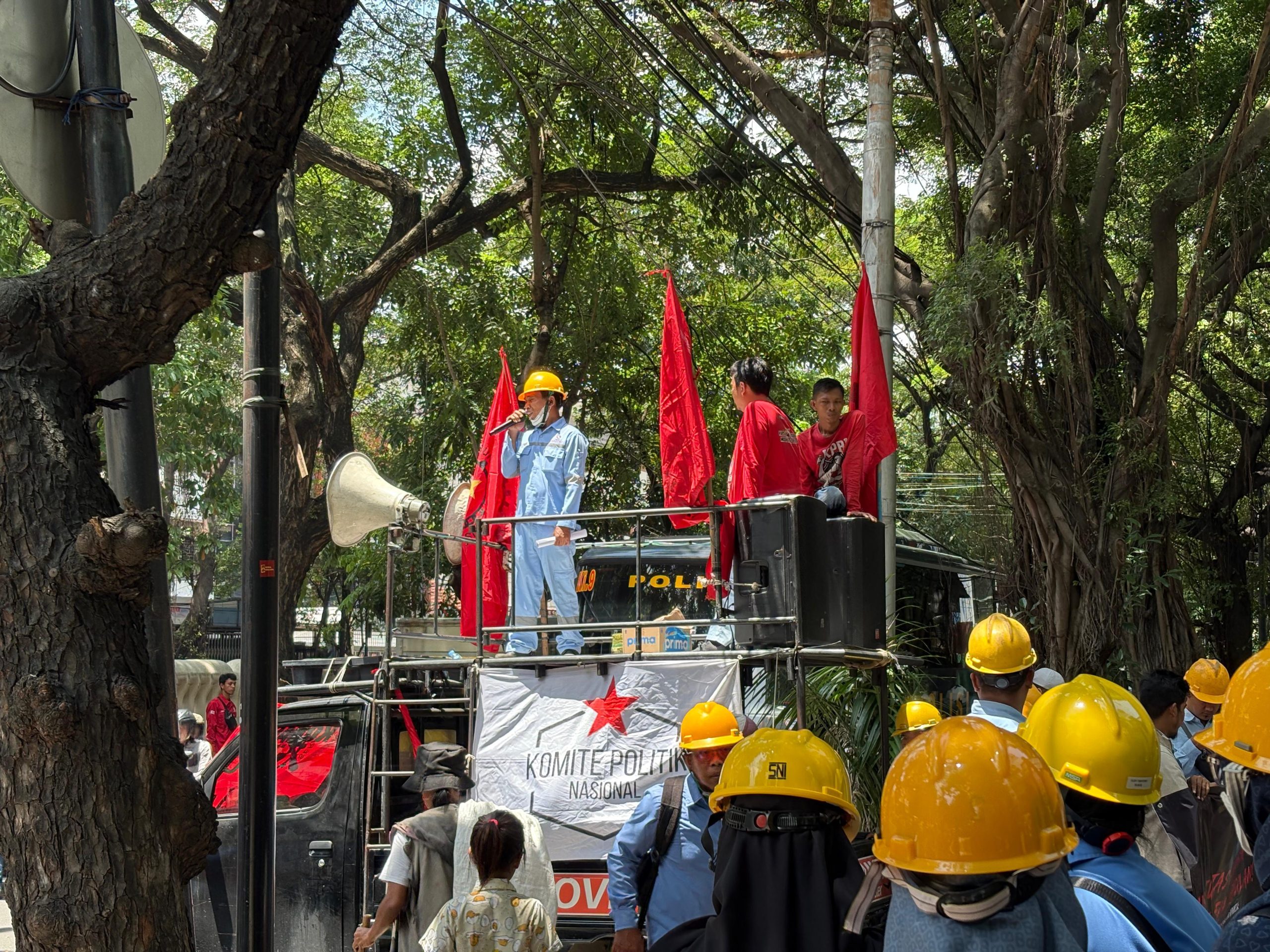 Dalam aksi tersebut, para pekerja mendesak Mahkamah Agung agar segera memberikan kepastian hukum atas proses kasasi dan peninjauan kembali yang diajukan perusahaan.