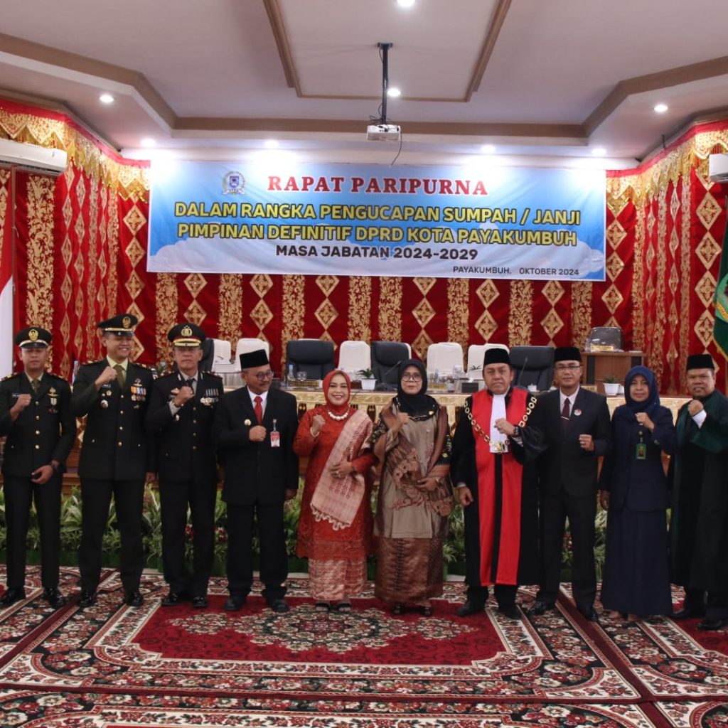 Payakumbuh, Suarapribumi.co.id – Pj. Wali Kota Payakumbuh menghadiri prosesi pengucapan sumpah/janji pimpinan definitif DPRD Kota Payakumbuh periode 2024-2029 di Ruang Sidang DPRD Kota Payakumbuh, Senin (14/10/2024).