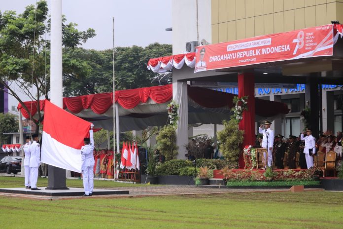 Payakumbuh, suarapribumi.co.id — Penjabat (Pj) Walikota Payakumbuh Rida Ananda menjadi Inspektur Upacara Peringatan HUT Republik Indonesia ke-78 di Halaman Balai Kota Payakumbuh, Kamis (17/8/2023).