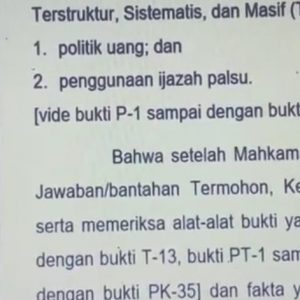 Sementara dalil-dalil pokok permohonan terkait politik uang yang terstruktur sistematis dan dugaan ijazah palsu, menurut MK juga tidak beralasan menurut hukum sehingga tidak dapat untuk menyimpangi ketentuan pasal ketentuan pasal 158 ayat 2 UU No. 10 Tahun 2016 terkait selisih suara.