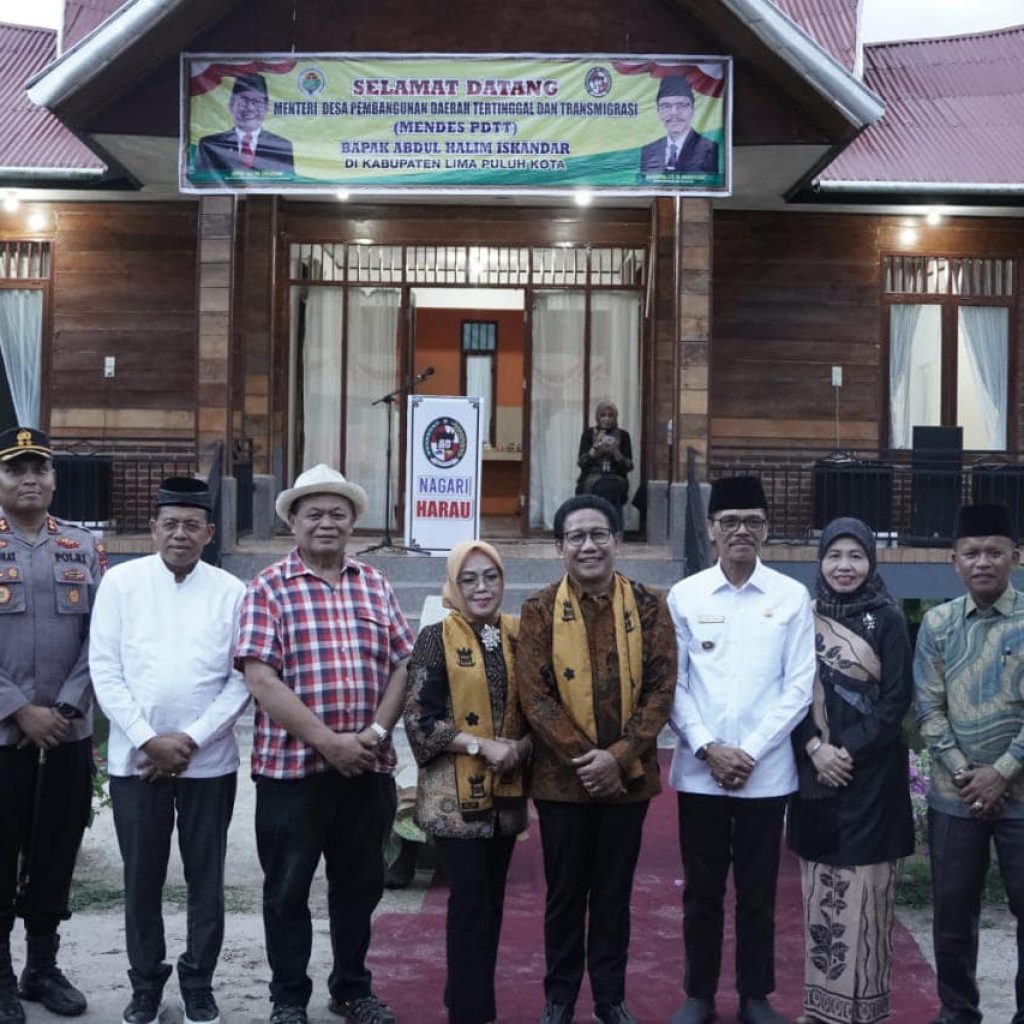 Limapuluh Kota, suarapribumi.co.id — Perkembangan Desa/Nagari Harau, Kecamatan Sarilamak yang begitu pesat dalam beberapa tahun terakhir akan diproyeksikan Kementerian Desa, Pembangunan Daerah Tertinggal dan Transmigrasi (Kemendes PDTT) menjadi salah satu jejaring desa ASEAN (ASEAN Village Network/AVN). “Jejaring Desa ASEAN merupakan jejaring desa atau asosiasi desa yang terbuka, mandiri, inklusif dengan tiga platform fokus yang terdiri dari Desa Wisata, Desa Digital dan Desa OVOP (One Village One Product), dan Nagari Harau termasuk dalam platform Nagari Wisata,” ungkap Menteri Desa PDTT Abdul Halim Iskandar saat menyambangi Kabupaten Limapuluh Kota sekaligus peresmian Homestay Pemerintah Nagari Nagari Harau, Jum’at, (19/05/2023). Dalam kunjungan ke Limapuluh Kota Menteri yang akrab disapa Gus Halim turut didampingi istri, Lilik Umi Nasriyah, dan disambut oleh Bupati Limapuluh Kota Safarudddin Dt.Bandaro Rajo, Rektor UNP Ganefri, Kapolres Limapuluh Kota AKBP. Ricardo Conrat Yusuf, Dandim 0306/50 Kota Letkol.Inf.Deny Nurcahyono, Ketua TP PKK Nevi Safarudddin, Para Asisten, dan sejumlah Kepala Perangkat Daerah di Kabupaten Limapuluh Kota.