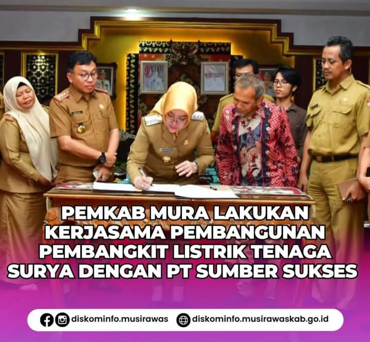 Musi Rawas, Suarapribumi.co.id — Guna melengkapi sarana hijau di Kabupaten Musi Rawas supaya menjadi percontohan pembangunan energi hijau di Sumatera Selatan. Pemerintah Kabupaten Musi Rawas (Pemkab Mura) melakukan kerjasama dengan PT Sumber Energi Sukses Makmur, bertempat di Pendopoan Rumdin Bupati Mura, Selasa (14/11/2023).