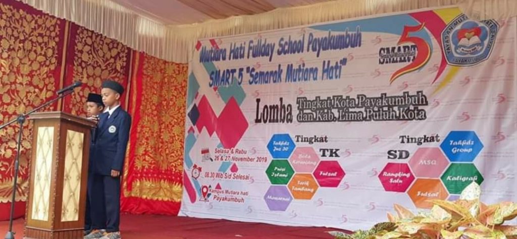 Payakumbuh, SUARAPRIBUMI — SDI Mutiara Hati Fullday School yang berada dibawah naungan Yayasan Mutiara Hati Saiyo Payakumbuh menggelar acara Semarak Mutiara Hati “SMART” ke 5 selama dua hari, Selasa dan Rabu tanggal 26 dab 27 November 2019.