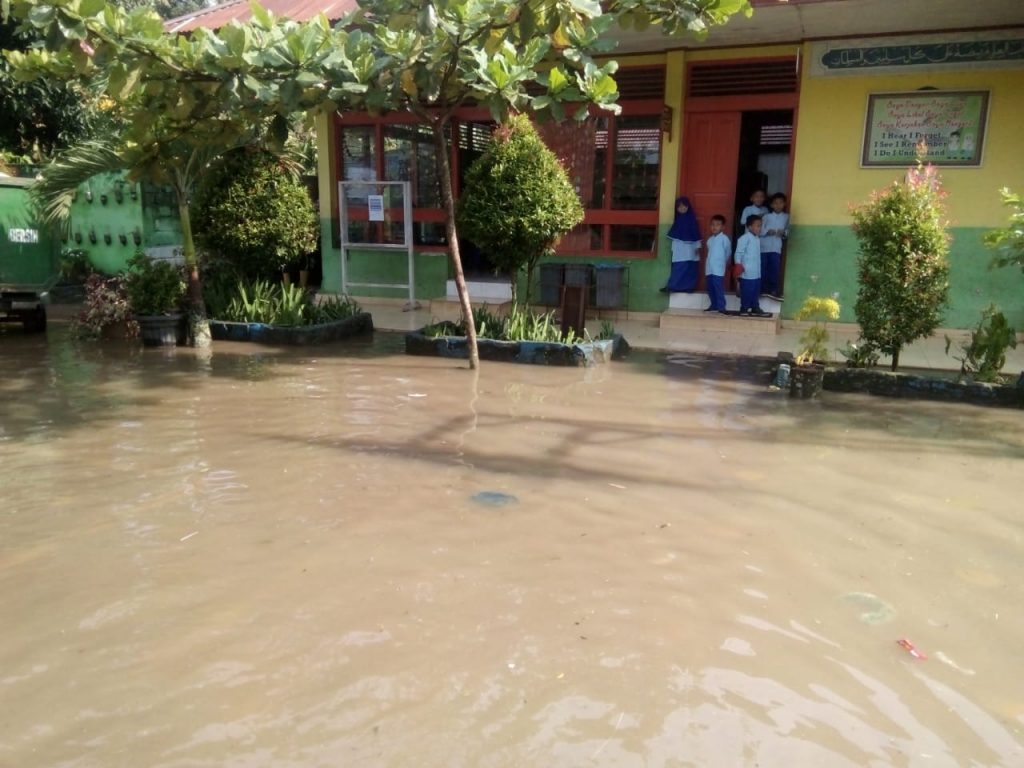 Berdasarkan pantauan di lapangan, air menggenang mulai dari luar pagar sekolah hingga ke halaman sekolah, dan nyaris masuk ke dalam ruang kelas dan ruang guru.